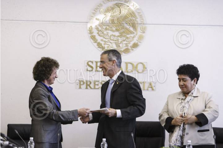 MÉXICO, D.F., 01AGOSTO2012.- José González Morfín, Senador Presidente de la Mesa Directiva de la Comisión Permanente, recibió el informe del IFA por parte de Jaqueline Peschard, comisionada Presidenta. FOTO: CUARTOSCURO.COM
