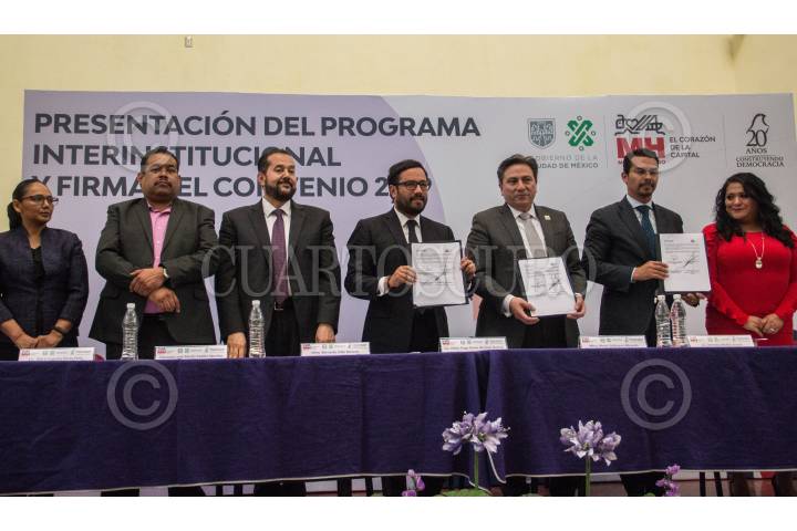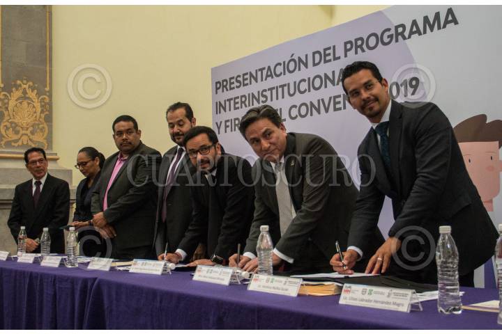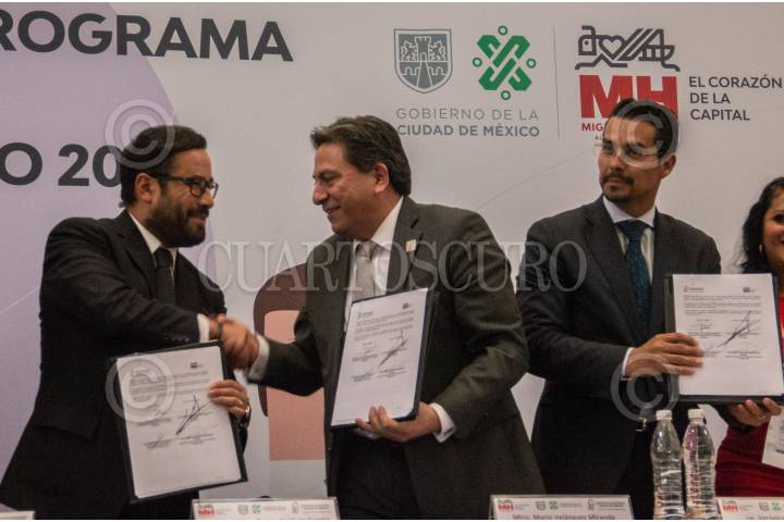 CIUDAD DE MÉXICO, 11ABRIL2019.- Víctor Hugo Romo de Vivar, alcalde de la Delegación Miguel Hidalgo, Mario Velázquez Miranda, Consejero Presidente del Instituto Electoral de la Ciudad de México y Bernardo Valle Monroy, Consejero Electoral y Presidente de la Comisión de Participación Ciudadana y Capacitación del Consejo General del IECM, encabezaron la firma de convenio de colaboración entre el IECM y la Alcaldía Miguel Hidalgo. FOTO: ANDREA MURCIA /CUARTOSCURO.COM