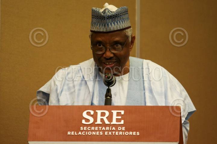 Aminu Iyawa, embajador de Nigeria en México, durante la entrega de bienes culturales incautados.
