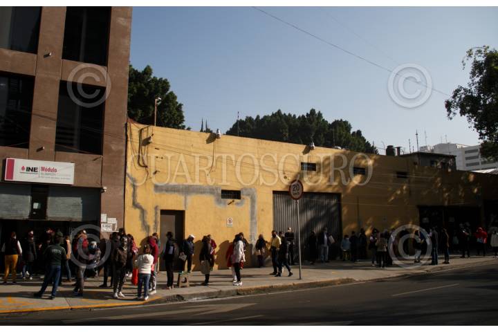 Decenas de personas se formaron desde temprana hora en las inmediaciones del Módulo INE ubicado en la Alcaldía Cuauhtémoc con el fin de tramitar su credencial de elector