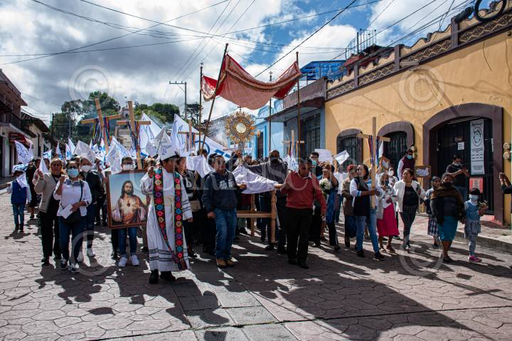 En el marco de la celebración del Cuerpo de Cristo de la iglesia Católica, el padre Marcelo y la parroquia de la santísima Virgen de Guadalupe llamaron a la población a celebrar una misa y realizar una peregrinación para pedir por La Paz en la región después de que grupos armados se enfrentaran en la calles de este pueblo mágico el día 14 de junio.