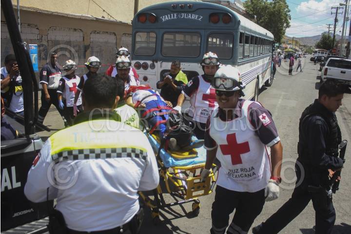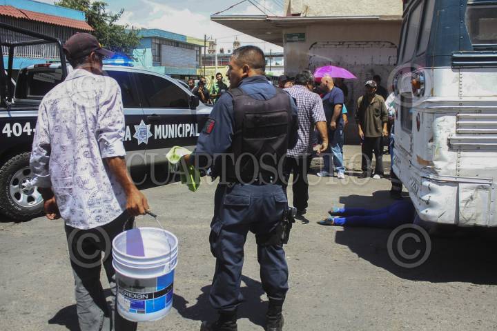 CIUDAD JUÁREZ, CHIHUAHUA, 30JUNIO2015.- Una mujer, de nombre Elizabeth Medrano Mendoza de 30 años, perdió la vida al ser atropellada sobre las calles Mariscal y Melchor Ocampo por un camión de transporte público de la línea Valle de Juárez, mientras caminaba por la zona centro. La mujer fue trasladada al Hospital General en donde recibió atención médica sin embargo falleció en el nosocomio. FOTO: NACHO RUIZ /CUARTOSCURO.COM