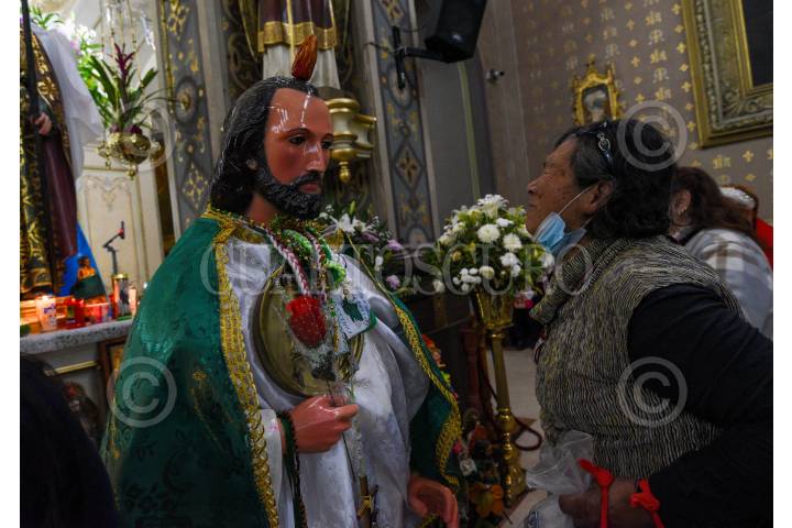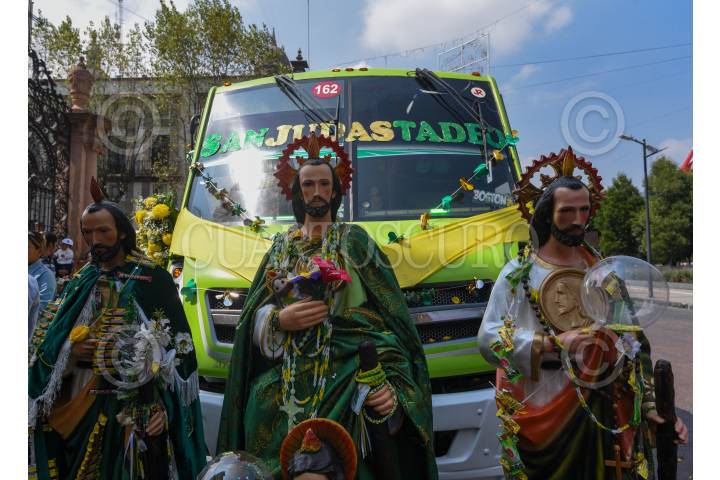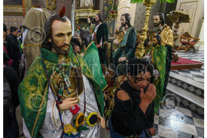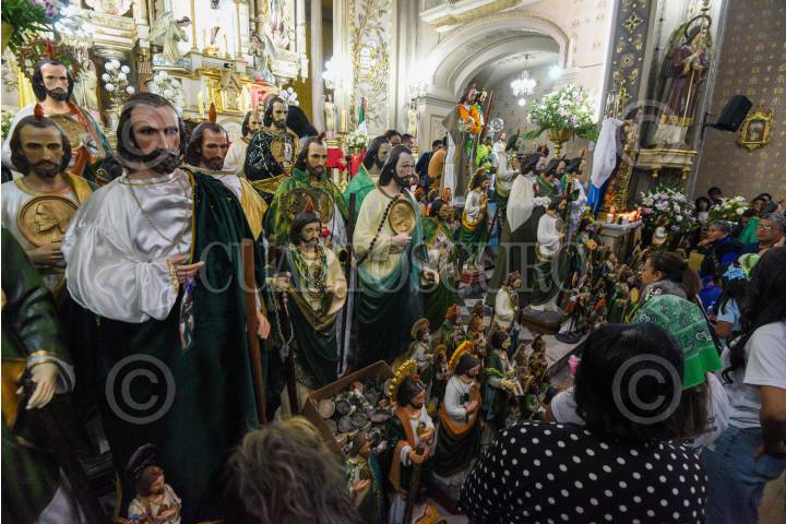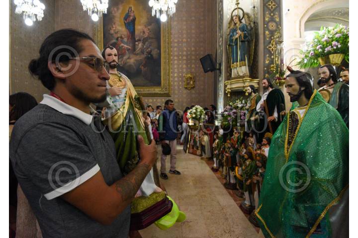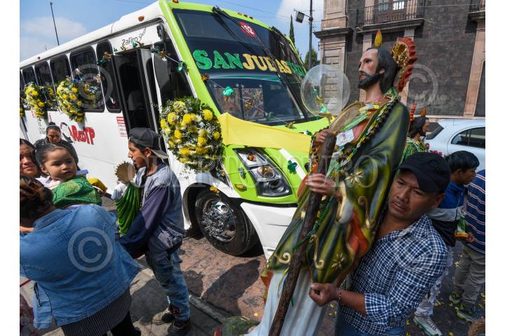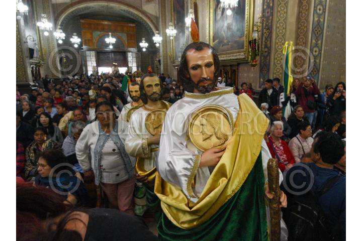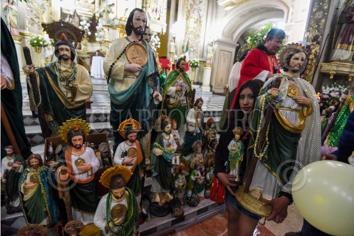 TOLUCA, ESTADO DE MÉXICO, 28OCTUBRE2024.- Cientos de personas acudieron a la Iglesia de la Santa Veracruz en Toluca para celebrar a San Judas Tadeo, imágenes de todos tamaños desfilaron por el lugar para escuchar misa y ser bendecidos, agradeciendo por todos los favores recibidos y pedir por un mejor año a su Santo Patrono. FOTO: CRISANTA ESPINOSA AGUILAR /CUARTOSCURO.COM