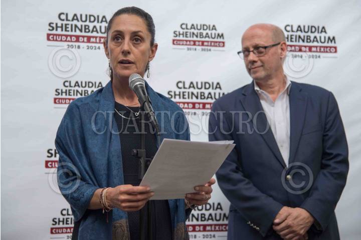 CIUDAD DE MÉXICO, 11SEPTIEMBRE2018.- Claudia Sheinbaum, jefa de gobierno electa de la capital, y Carlos Mackinlay, próximo titular de turismo capitalino; compartieron con los medios de comunicación la convocatoria del concurso de la imagen institucional del gobierno entrante durante el periodo 2018-2024. La convocatoria va dirigida a publicistas, diseñadores, mercadólogos, artistas visuales y plásticos que residan en la capital. FOTO: MARIO JASSO /CUARTOSCURO.COM