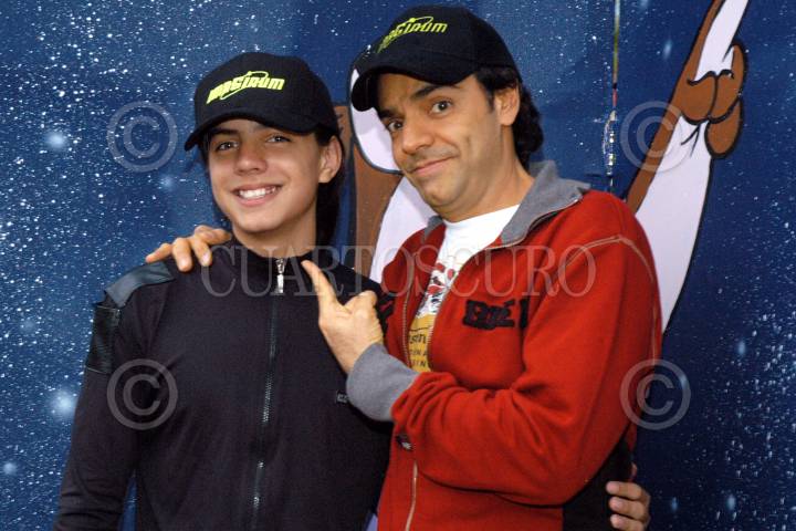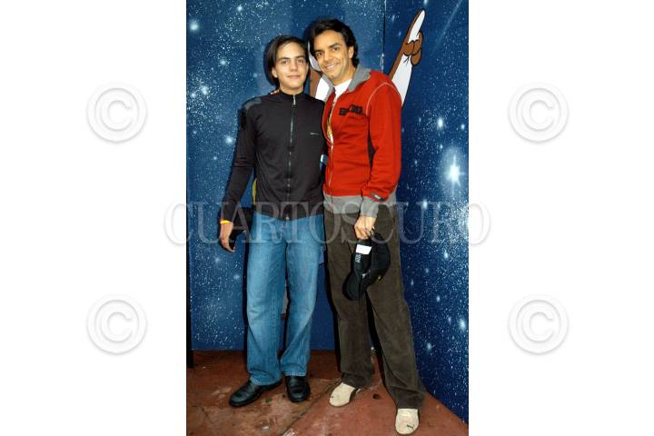 MEXICO, DF 14AGOSTO2005.- La tarde del sabado en un parque de diversiones del sur de la ciudad de México, El comediante Eugenio Derbez asistió a la presentación de la pelicula de dibujos animados "Imaginum". Derbez presta su voz al personaje principal de la historia; en la foto con su hijo Vadir. FOTO: Miguel Dimayuga/CUARTOSCURO.COM