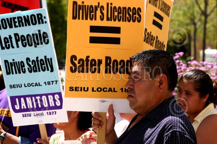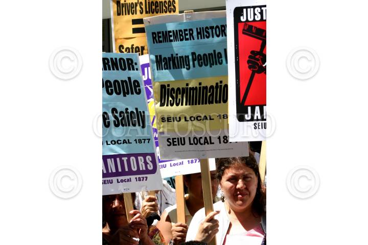 OALKLAND, CALIFORNIA 27AGOSTO2004 - Inmigrantes se manifiestaron afuera del edificio del estado de California en Oakland, exigiendo que el Gobernador Arnold Schwarzenegger apoye una ley que permita a inmigrantes indocumentados a recibir licencias para conducir. FOTO: David Bacon/CUARTOSCURO.COM
