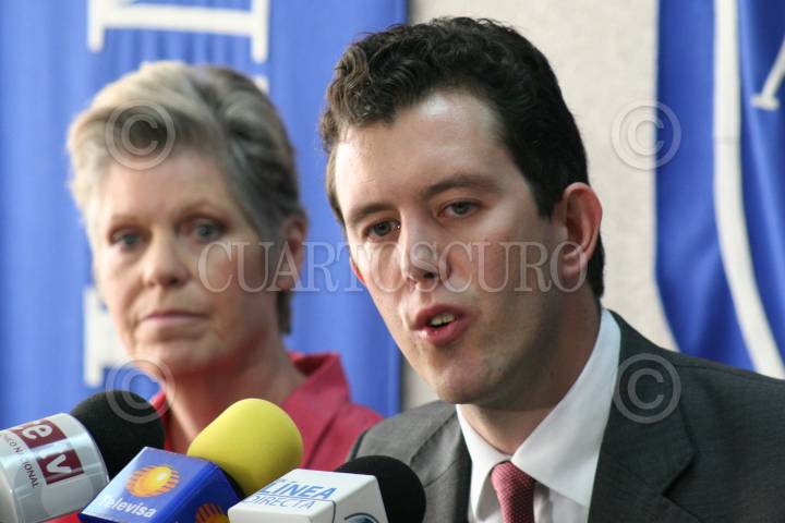 MEXICO D.F. 14MARZO2006.- Georgina Breakwell y Larry David Rubin, integrantes de American Chamber/México, durante conferencia de prensa, donde se habló de los pormenores de la propuesta de legalización de imigrantes latinos en los Estados Unidos. FOTO: Diego Gallegos/CUARTOSCURO.COM