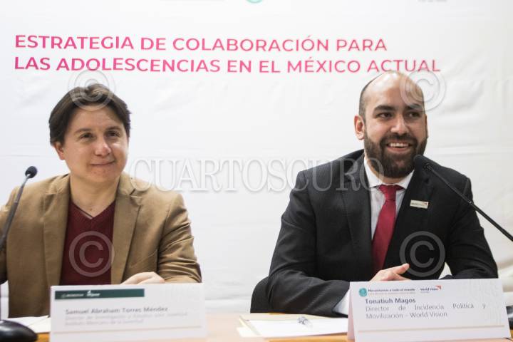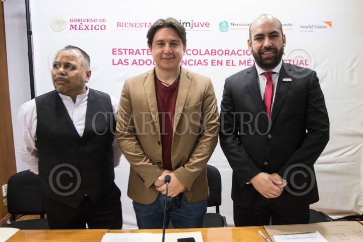 CIUDAD DE MÉXICO. 25NOVIEMBRE2019.- Mauricio Sáenz, Samuel Torres y Tonatihu Magos, en el anuncio del Diplomado Virtual, Adolescencias en el México Actual, que organiza, el Imjuve y la Secretaria de Bienestar. FOTO: VICTORIA VALTIERRA /CUARTOSCURO.COM