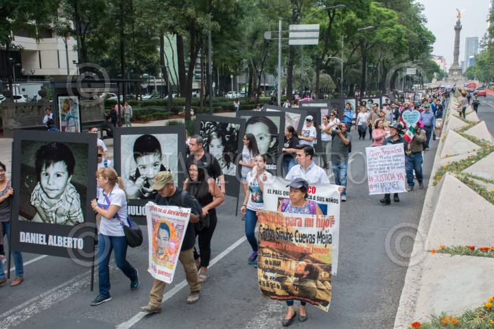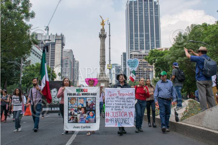 CIUDAD DE MÉXICO, 05JUNIO2017.- Familiares de los niños fallecidos en el incendio de la guardería ABC ocurrido en el Estado de Sonora hace 8 años, se manifestaron del Ángel de la Independencia a las Instalaciones del Instituto Mexicano del Seguro Social (IMSS), para develar un antimonumento enfrente de las instalaciones de este instituto para exigir que no existan más tragedias en las guarderías del país. FOTO: MARIO JASSO /CUARTOSCURO.COM