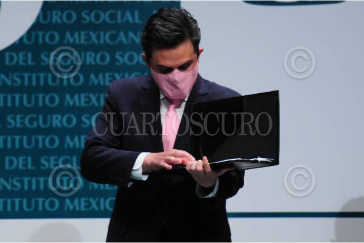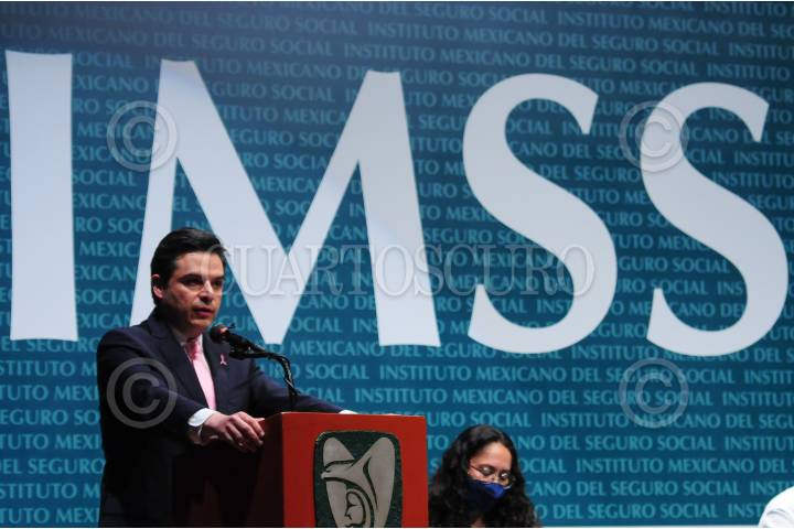 El titular del IMMS, Zoé Robledo, durante su participación.