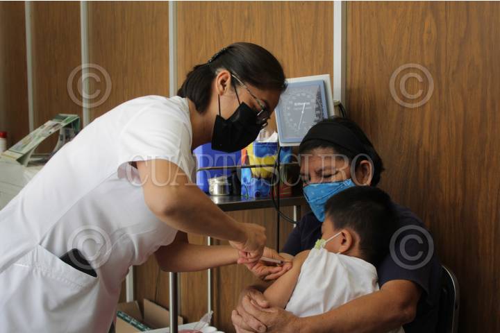 Un médico toma registro del peso de un niño que asiste para que le realicen la prueba de detección de Covid-19.