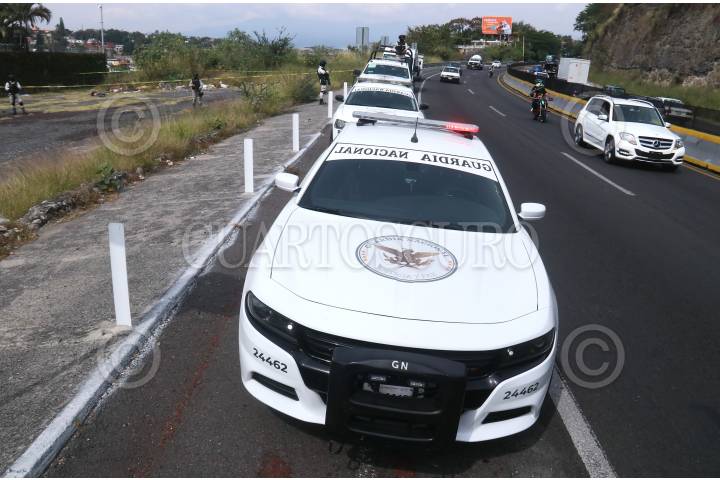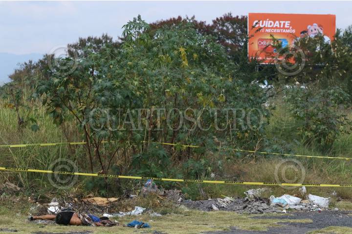 CUERNAVACA, MORELOS, 10DICIEMBRE2023.- En dos sitios distintos fueron asesinados dos hombres en la capital de Morelos. El primer hecho se reportó después de las 10:00 horas de la mañana, cuando transeúntes que caminaban por el paraje la Carpa, ubicado en la zona boscosa, tuvieron a la vista el cadáver de un hombre con señales de violencia extrema y disparos de arma de fuego; al lugar acudieron servicios de primeros auxilios que confirmaron el deceso. El lugar fue resguardado por policía del municipio. Mas tarde, automovilistas que circulaban en kilometro 96, carril con dirección al sur, de la Autopista del Sol reportaron que a la orilla de la carretera estaba el cadáver de un joven. La victima vestía playera azul, short negro, descalzo, se presume que fue privado de su libertad en la madrugada, también tenía las manos amarradas con un cable, además de presentar evidencias de golpes y disparos de arma de fuego. Al sitio llegaron elementos de la Guardia Nacional, quienes resguardaron la zona en espera de la llegada de los peritos e investigadores de la Fiscalía de Justicia quienes iniciaran las averiguaciones. Finalmente, el Servicio Médico Forense levanto los cadáveres y los traslado a la morgue en espera de que sean reconocidos y reclamados. FOTO: MARGARITO PÉREZ RETANA / CUARTOSCURO.COM