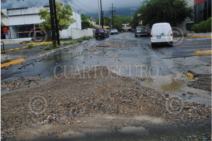 MONTERREY, NUEVO LEÓN, 03JULIO2010.- Autos atorados, destrozos en el asfalto de las calles, deslaves que impiden la vialidad y lodo en las casas por el desborde el Río La Silla dejó a su pasó el huracán Alex, aun convertido en tormenta tropical. Los daños aún son incuantificables. FOTO: MARÍA VALTIERRA/CUARTOSCURO.COM