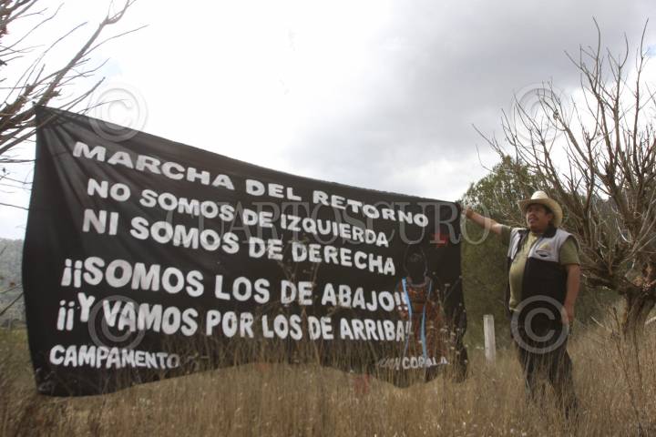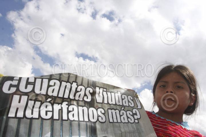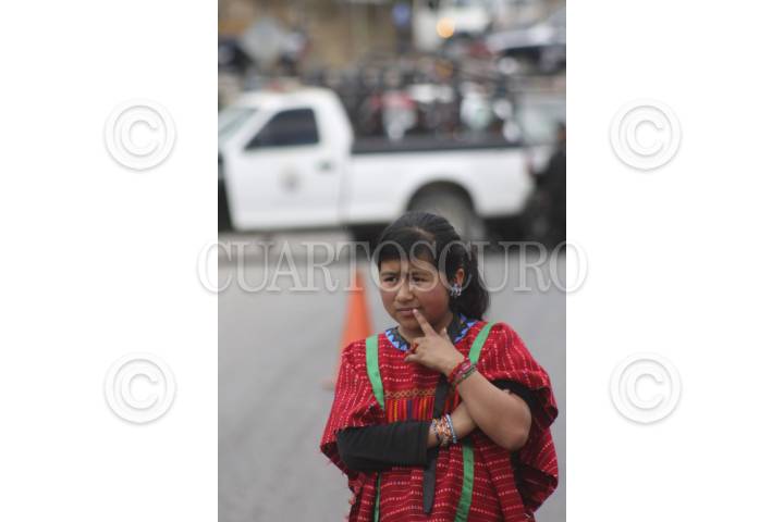 TLAXIACO, OAXACA, 27ENERO2012.- A los indígenas triquis desplazados de San Juan Copala quienes participan en la "Caravana del Regreso", les fue impedido el paso por elementos de la Policía Estatal. FOTO: ARTURO PÉREZ ALFONSO/CUARTOSCURO.COM