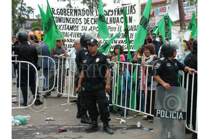 NEZAHUALCOYOTL, ESTADO DE MÉXICO, 23SEPTIEMBRE2008.- Elementos de la Agencia de Seguridad Estatal (ASE), impidieron el paso al estadio Neza 86 a comuneros del município de Chimalhuacán, quienes exigían al gobernador del Estado de México, Enrique Peña Nieto, su intervención para que antorchistas de ese município desalojaran sus tierras que dolosamente invadieron. FOTO: MARIO NULO/CUARTOSCURO.COM