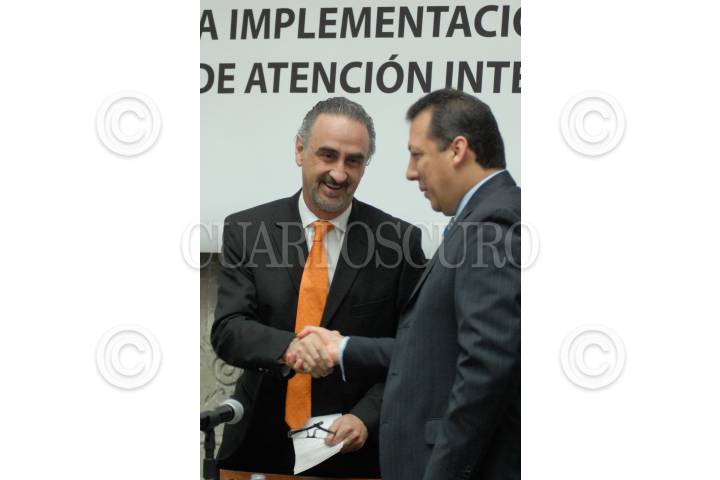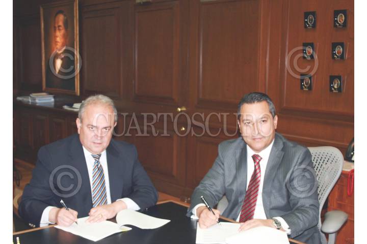 MÉXICO, D.F. ,26AGOSTO2010.- Raúl Placencia Villanueva, Presidente de la Comisión de Derechos Humanos y Joaquín Pérez, Presidente de Convivencia sin Violencia A.C. realizaron la firma del convenio de colaboración para la Implementación de la Red Nacional de Atención Integral a Jóvenes. FOTO: GUILLERMO PEREA/CUARTOSCURO.COM