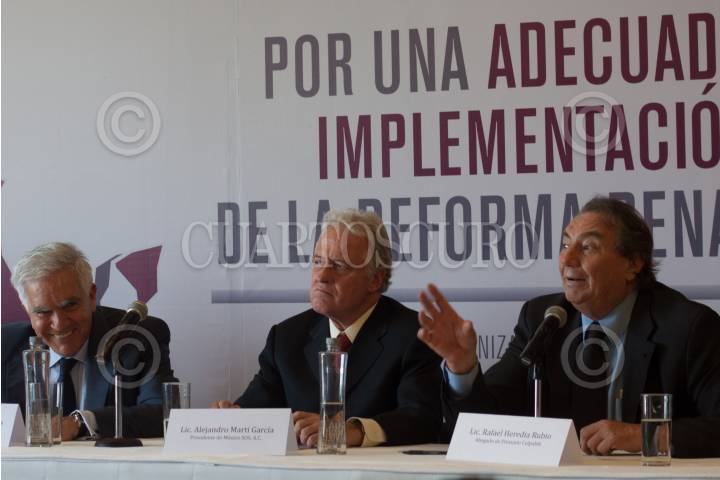 MÉXICO, D.F., 23ABRIL2013.- Ernesto Canales Santos, presidente de instituciones Renace ABP, Alejandro Martí, presidente de México SOS, y Rafael Heredia Rubio, abogado del documental de Presunto Culpable, durante la conferencia de prensa para dar a conocer el programa y objetivos del Quinto Foro Nacional sobre Seguridad y Justicia por una adecuada implementación de la Reforma Penal. FOTO: MOISÉS PABLO / CUARTOSCURO.COM