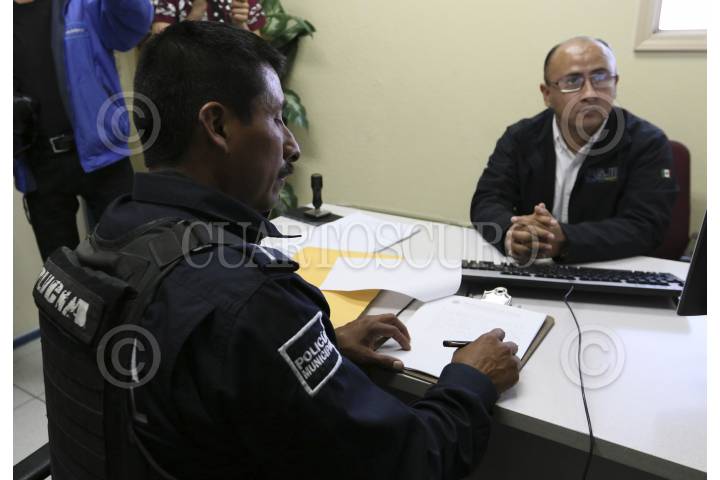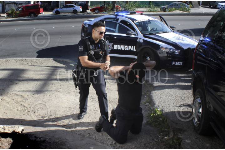 TIJUANA, BAJA CALIFORNIA, 24NOVIEMBRE2015.- Con miras en la implementación del Nuevo Sistema de Justicia Penal, la Policía Municipal y Procuraduría General de Justicia del Estado realizaron un simulacro sobre la recepción de detenidos en la Agencia del Ministerio Público Mariano Matamoros. La intención fue mostrar la nueva forma de trabajar con la entrada en vigor del sistema el próximo año, el cual tratará de evitar que existan motivos para que el juez deje en libertad a los responsables, así como respetar los derechos humanos de los detenidos. FOTO: CHRISTIAN SERNA /CUARTOSCURO.COM
