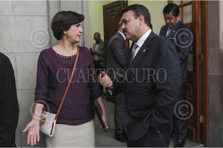 CIUDAD DE MÉXICO, 16JUNIO2016.- Patricia Mercado, secretaria de gobierno capitalino, platica con Hiram Almeida, titular de la secretaría de seguridad pública, previo a la conferencia de prensa para anunciar la implementación total del sistema de justicia penal acusatorio en la ciudad de México. FOTO: DIEGO SIMÓN SÁNCHEZ /CUARTOSCURO.COM