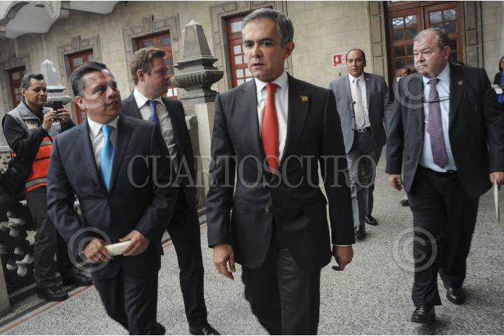 CIUDAD DE MÉXICO, 16JUNIO2016.- Manuel Granados, consejero jurídico y de Servicios Legales; Miguel Ángel Mancera, jefe de gobierno capitalino y Edgar Elías Azar, presidente del Tribunal Superior de Justicia de la ciudad de México, durante la conferencia de prensa para anunciar la implementación total del sistema de justicia penal acusatorio en la ciudad de México. FOTO: DIEGO SIMÓN SÁNCHEZ /CUARTOSCURO.COM