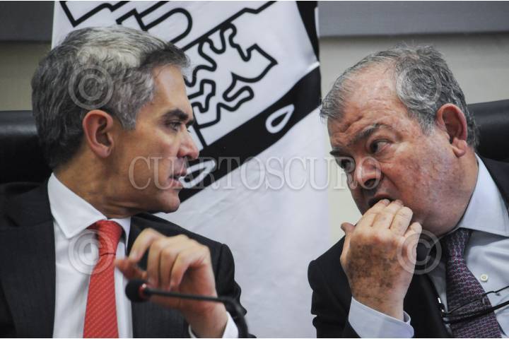 CIUDAD DE MÉXICO, 16JUNIO2016.- Edgar Elías Azar, presidente del Tribunal Superior de Justicia de la ciudad de México y Manuel Granados, consejero jurídico y de Servicios Legales, durante la conferencia de prensa para anunciar la implementación total del sistema de justicia penal acusatorio en la ciudad de México. FOTO: DIEGO SIMÓN SÁNCHEZ /CUARTOSCURO.COM