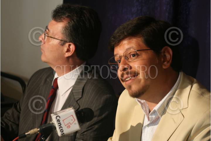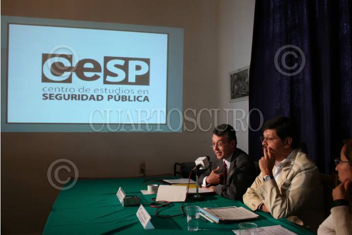 MÉXICO, D.F., 21JULIO2008.- Adolfo Miranda Castillo, presidente del centro de estudios en seguridad publica y José Alfonso Suaréz, del consejo consultivo del centro de estudios de seguridad publica, durante la conferencia de prensa "El riesgo que implica la posible vinculación de intereses privados con las fuerzas armadas de México", donde se denuncio que empresas militares privadas han desarrollado fuertes vínculos con la explotación de recursos naturales por compañías extranjeras. FOTO: RICARDO CASTELAN /CUARTOSCURO.COM