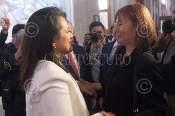 La nueva ministra saluda a la diputada Tatiana Clouthier