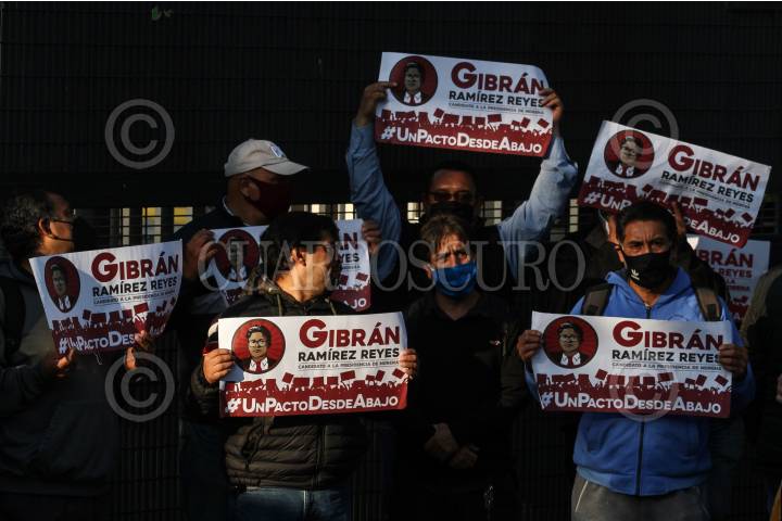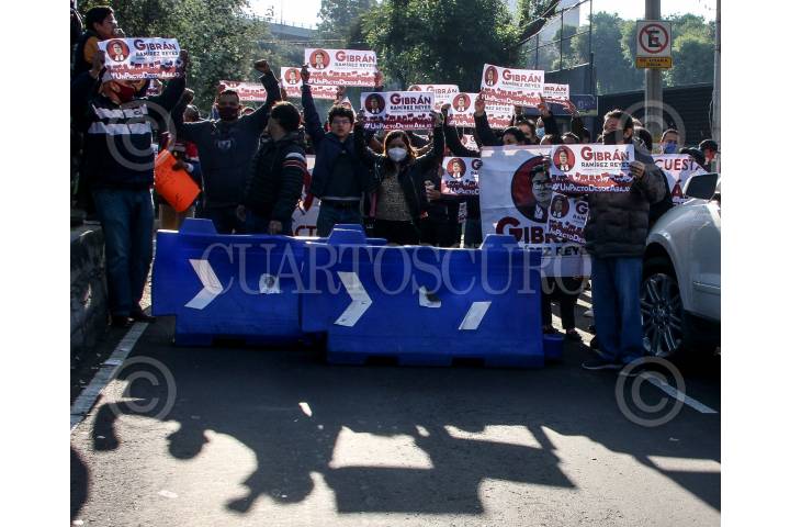Militantes de Morena muestran su apoyo a Gibrán Ramírez a las afueras del INE. FOTO: ROGELIO MORALES /CUARTOSCURO.COM