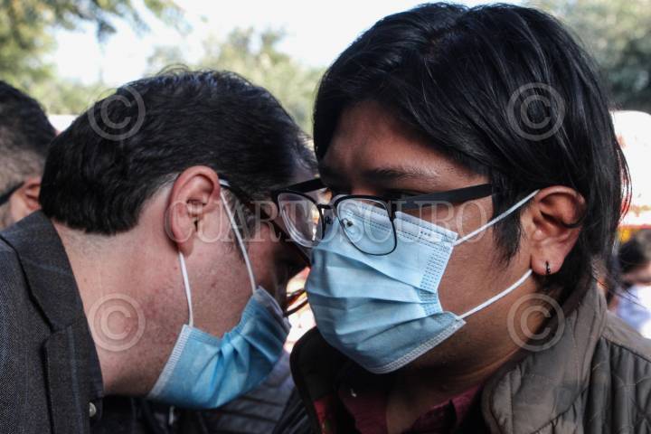 Gibrán Ramírez, momentos antes de ingresar a oficialía de partes del INE, para impugnar el resultado de la encuesta de reconocimiento realizada por el instituto. FOTO: ROGELIO MORALES /CUARTOSCURO.COM