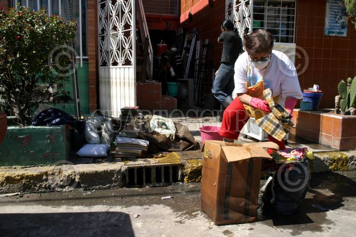 NEZAHUALCOYOTL, ESTADO DE MÉXICO, 10FEBRERO2010.- Vecinos de la colonia Impulsora continúan limpiando y desinfectando sus viviendas ya que la semana pasada se registraron inundaciones de aguas negras por el desbordamiento del Río de los Remedios. FOTO: RODOLFO ANGULO/CUARTOSCURO.COM