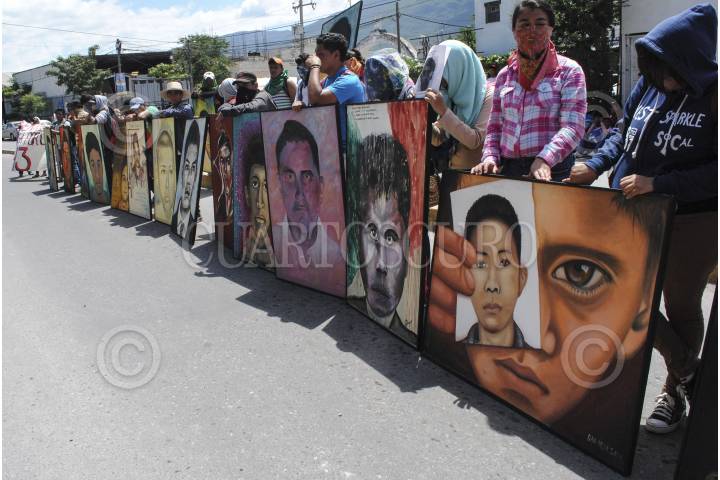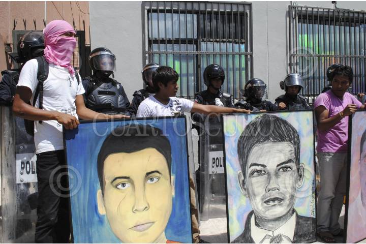TIXTLA, GUERERRO, 24SEPTIMEBRE2015.- Normalistas de Ayotzinapa, marcharon del plantel Raúl Isidro Brugos a Chilpancingo. Al llegar al congreso realizarón un mitin y colocaron pinturas de los 43 estudiantes desaparecidos, despues de que durantes 4 días policías del estado les impedieron el paso, en esta ocasión pasaron en marcha sin ningún contra tiempo. FOTO: JOSÉ I. HERNÁNDEZ /CUARTOSCURO.COM