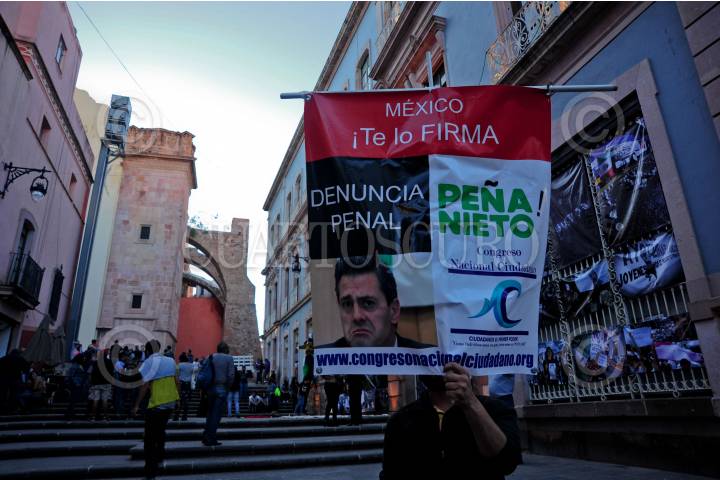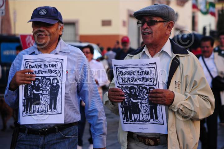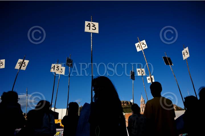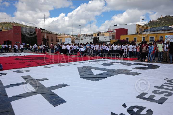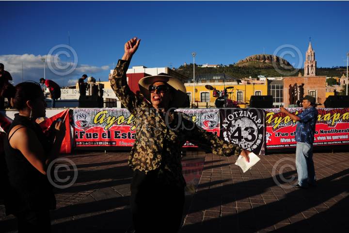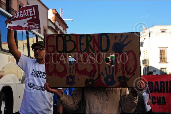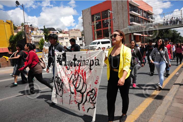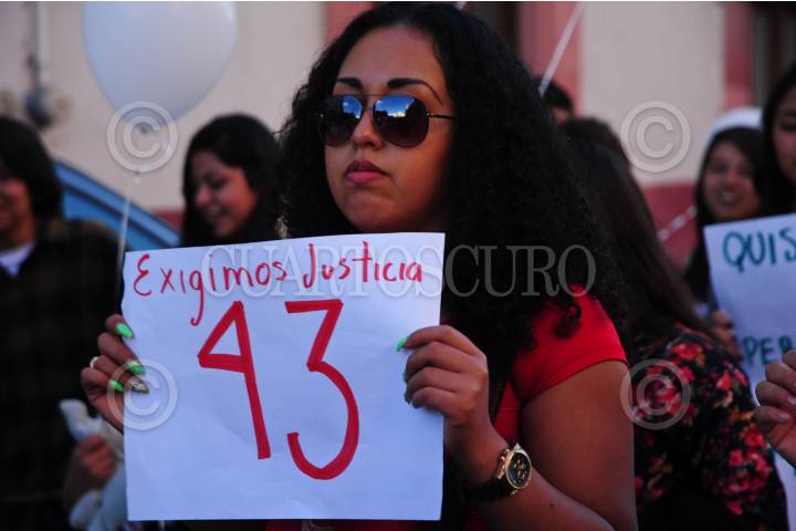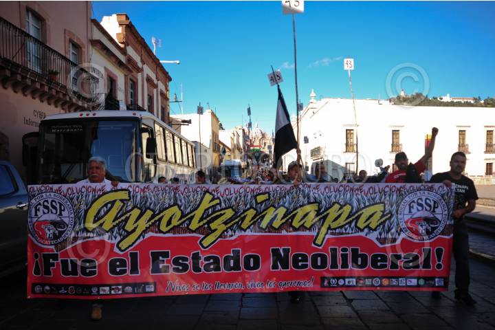 ZACATECAS, ZACATECAS, 26SEPTIEMBRE2015.-En conmemoración del primer aniversario de la desaparición de los 43 estudiantes normalistas en Iguala, Guerrero el pasado 26 de septiembre, diferentes organizaciones sociales se unieron y realizaron una marcha por diferentes calles de la ciudad para finalizar en la plaza Bicentenario con un mitin político. FOTO: ISABEL MATEOS /CUARTOSCURO.COM