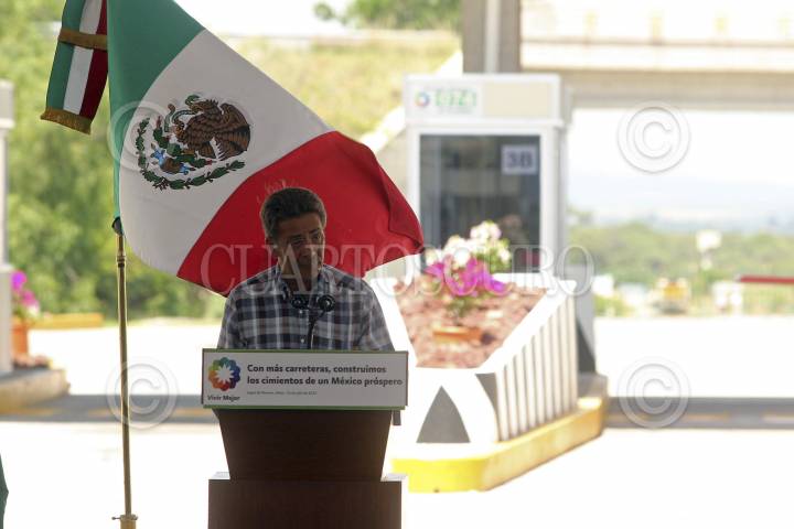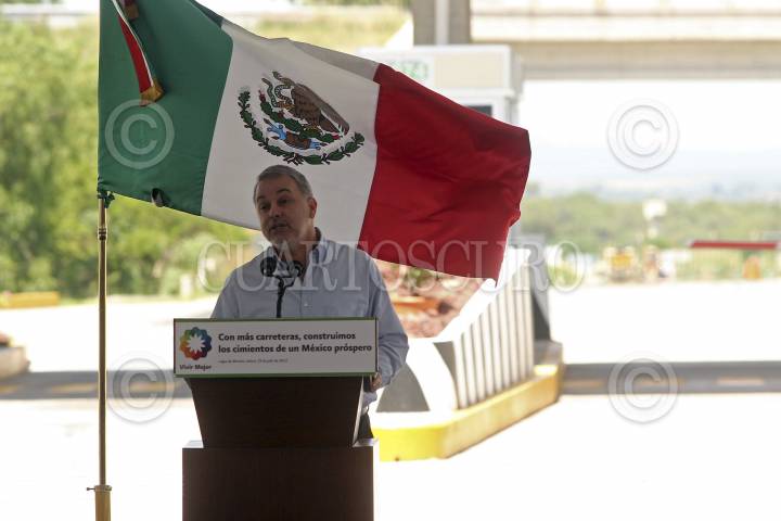 LAGOS DE MORENO, JALISCO, 25JULIO2012.- Emilio Márquez, gonernador del estado, en su discurso durante la inauguración de 78 kilómetros de tramo carretero que va de Lagos de Moreno a Las Amarillas, Villa de Arriaga, San Luis Potosí. FOTO: FERNANDO CARRANZA /CUARTOSCURO.COM