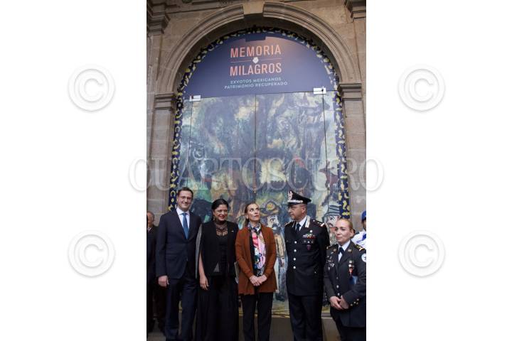 CIUDAD DE MÉXICO, 26AGOSTO2019.- Alejandra Frausto; Secretaria de Cultura Federal; Beatriz Müller, encargada de la Coordinación Nacional de Memoria Histórica y Cultural de México y Patricia Trujillo, coordinadora operativa de la Guardia Nacional; encabezaron la inauguración de la exposición Memoria de milagros, exvotos mexicanos. Cabe destacar que las piezas expuestas son patrimonio recuperado por el Instituto Nacional de Antropología e Historia (INAH), la muestra estará abierta al público durante tres meses en el Museo Nacional de las Culturas del Mundo. FOTO: ROGELIO MORALES /CUARTOSCURO.COM