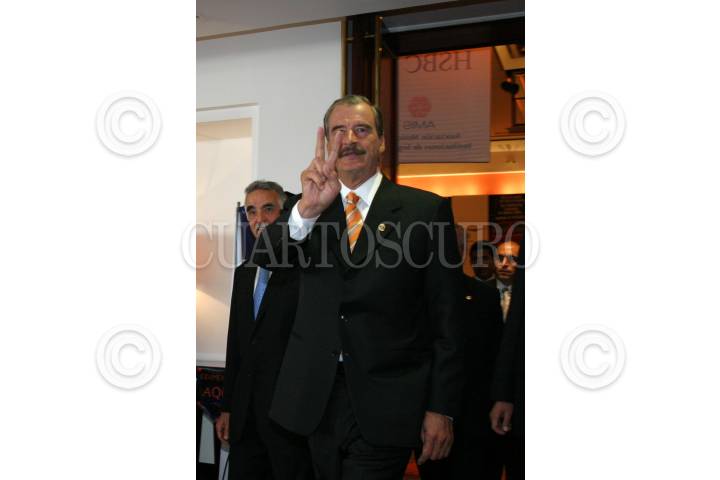 MEXICO, D.F. 23MAYO2005.- E presidente Vicente Fox, luego de inaugurar la 15a Convenciòn Nacional de Aseguradores ¨Factores para el desarrollo del mercado de seguros en México¨. FOTO: Sandra Perdomo/CUARTOSCURO.COM
