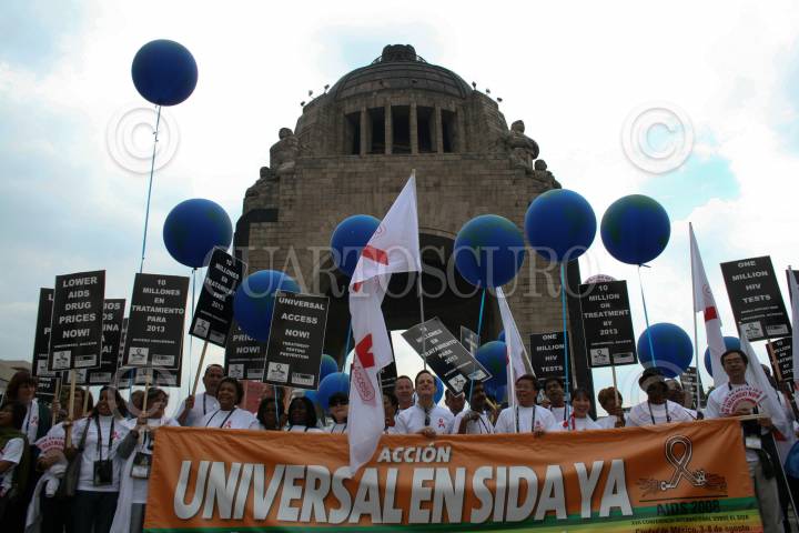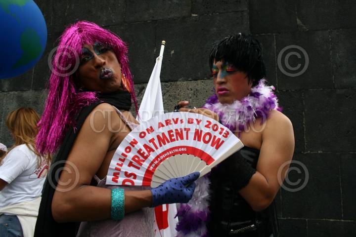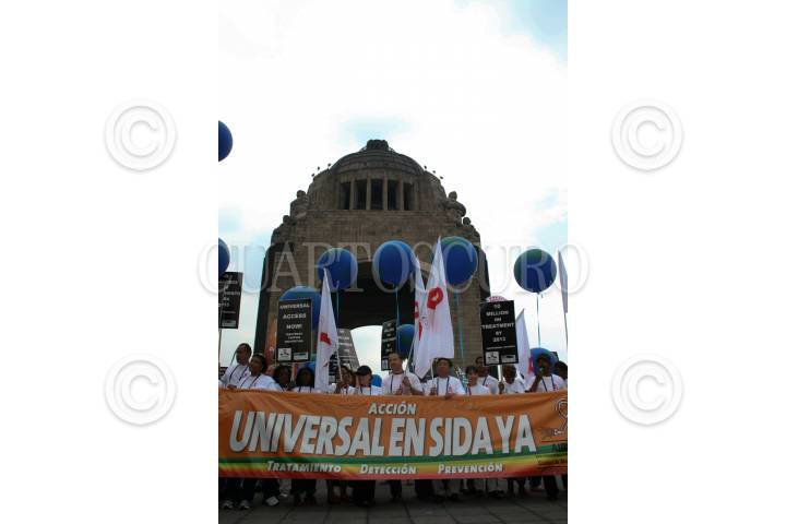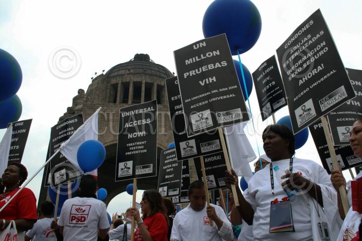 MÉXICO D.F., 03AGOSTO2008.- Diversas organizaciones marcharon del Monumento a la Revolución al Zócalo capitalino como parte de las actividades previas al arranque de la XVII conferencia sobre Sida, que se inaugurará oficialmente hoy por la noche. FOTO: SÁSHENKA GUTIÉRREZ/CUARTOSCURO.COM