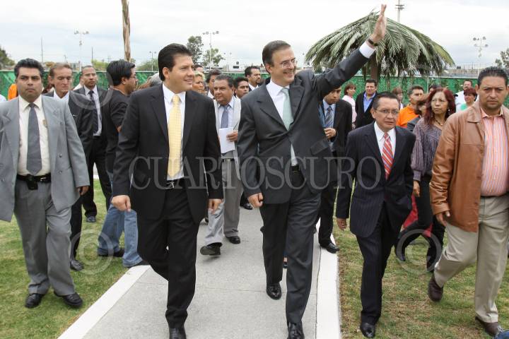 MÉXICO, D.F., 18JUNIO2010.- Marcelo Ebrard, jefe de gobierno del D.F. y Victor Hugo Lobo, jefe delegacional de Gustavo A. Madero inauguraron el Centro Deportivo Bicentenario ubicado en la colonia La Esmeralda. FOTO: RODOLFO ANGULO/CUARTOSCURO.COM