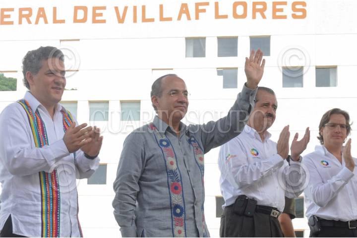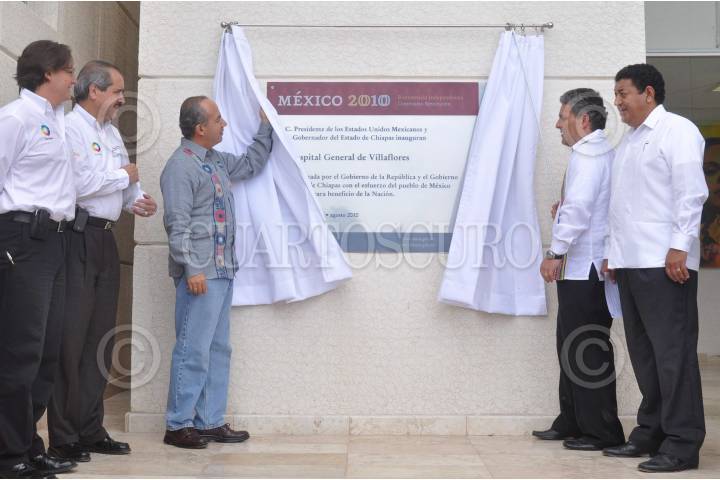 VILLAFLORES, CHIAPAS, 06AGOSTO2010.- El presidente Felipe Calderón acompañado del secretario de salud José Ángel Cordova Villalobos y el gobernador del estado Juan Sabines inauguraron el Hospital General de Miraflores con una inversión de más de 240 millones de pesos y 60 camas que beneficiará a más de 100,000 habitantes de la zona. FOTO: EDUARDO MORALES/CUARTOSCURO.COM