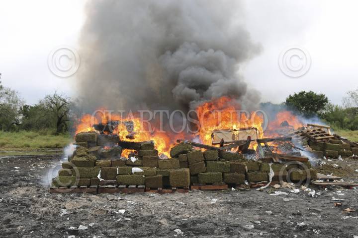 MÉXICO, D.F., 27NOVIEMBRE2015.- La Procuraduría General de la República (PGR) llevó a cabo ceremonias de incineración en las ciudades de Reynosa, Nuevo Laredo, Ciudad Victoria y Tampico, en Tamaulipas; se destruyeron en total alrededor de 14 toneladas de diversas drogas. Las diligencias ministeriales dieron cumplimiento al Programa de Destrucción de Narcóticos y a lo dispuesto en el Código Federal de Procedimientos Penales, el cual prevé dicha destrucción. En Reynosa, se incineraron casi 11 toneladas de marihuana, 128 gramos de semilla de marihuana, poco más de 13 gramos de cocaína y más de un kilogramo y medio de metanfetamina. La droga destruida está relacionada con 30 expedientes iniciados en Reynosa, Matamoros y Miguel Alemán. La incineración se llevó a cabo en las instalaciones del Campo de Tiro, ubicado sobre la carretera a San Fernando, en Reynosa, Tamaulipas. FOTO: PGR /CUARTOSCURO.COM