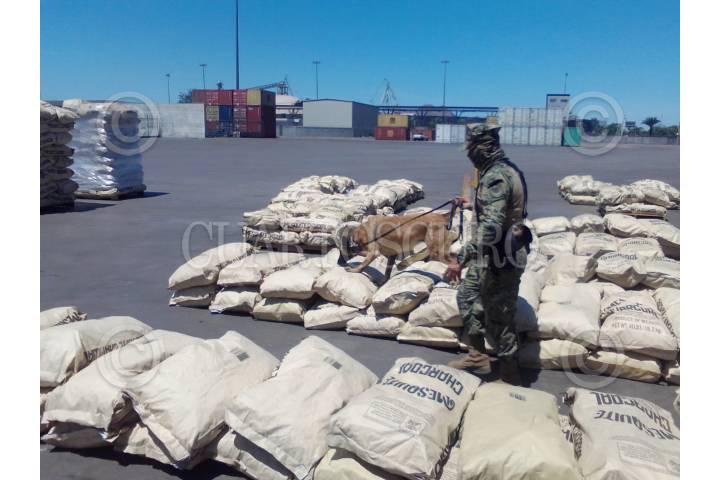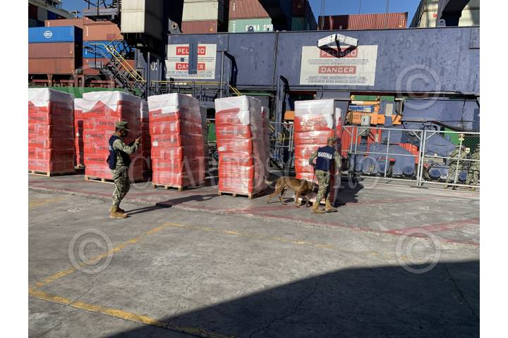 MARINA en coordinación con Aduanas, Guardia Nacional y FGR, aseguran más de 711 kilogramos de cocaína y metanfetamina en los puertos de Lázaro Cárdenas y Guaymas.