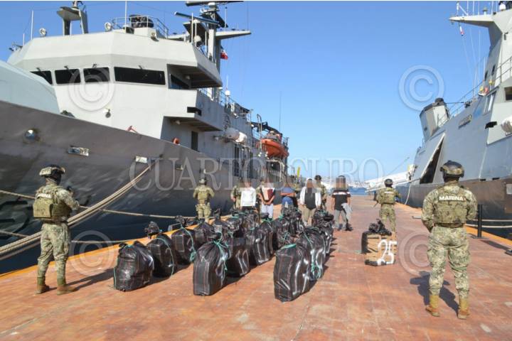 La Armada de México incautó 50 paquetes de clorhidrato de cocaína en el recinto de portuario de Ensenada.