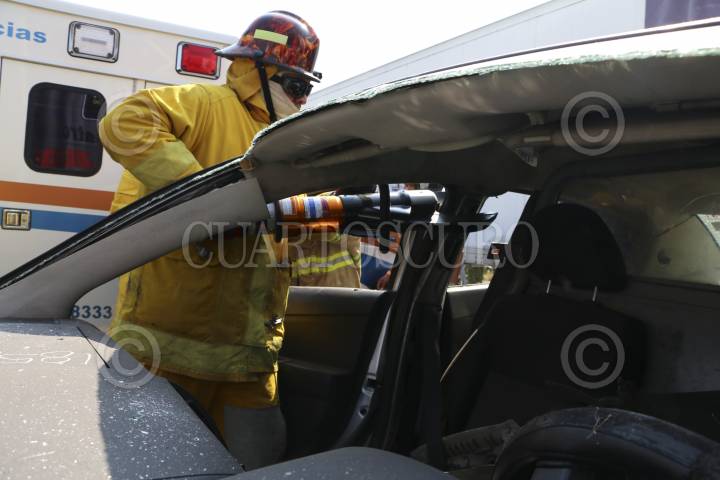 MÉXICO, D.F., 19DICIEMBRE2015.- Personal de rescate de todas diversas dependencias de rescate participaron en el segundo Reto Nacional de Extracción Vehicular que tiene como objetivo la homologación, capacitación y mejora en las técnicas de atención médica prehospitalaria en pacientes que se encuentran atrapados o confinados en vehículos siniestrados. Dicha exhibición se realizó en la base de Fuerza de Tarea de al SSP-DF. FOTO: SAÚL LÓPEZ /CUARTOSCURO.COM