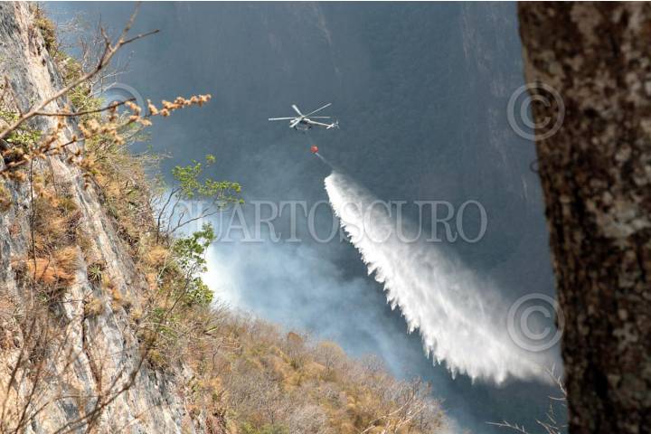 Trabajos de la Secretaría de Marina para extinguir los incendios en el Parque Nacional del Cañón del Sumidero.