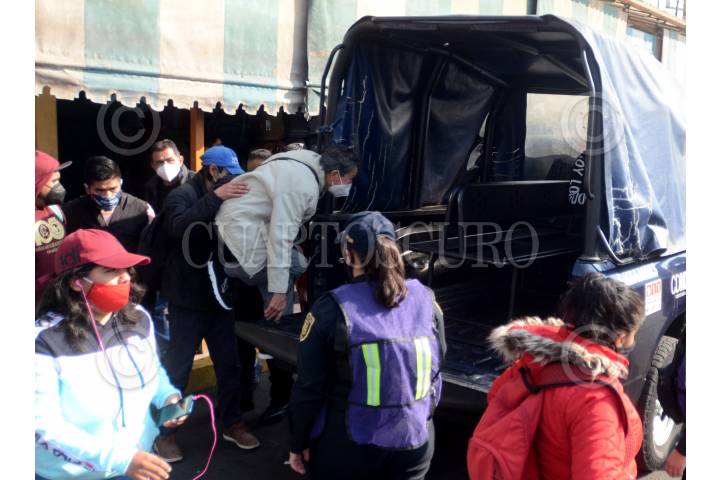 Personas fueron apoyadas por la Secretaría de Seguridad Ciudadana (SSC) para trasladarlos en patrullas del metro Tacubaya a observatorio y Chapultepec tras el incendio de las oficinas centrales del metro colectivo en la calle de Delicias.