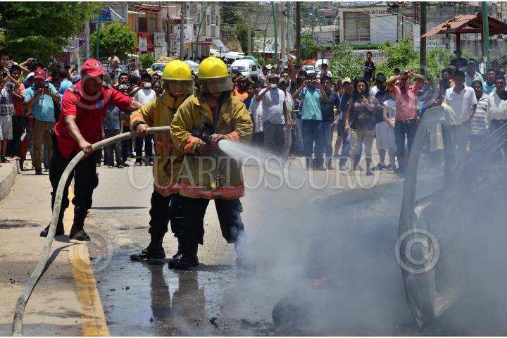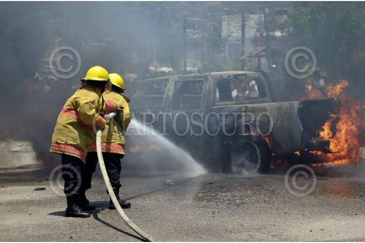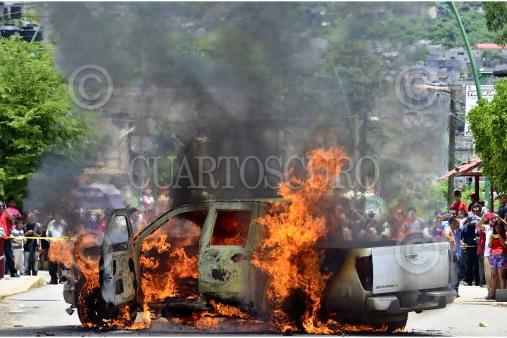 TLAPA LA MONTAÑA, GUERRERO, 07JUNIO2015.- En el marco de la jornada electoral sujetos desconocido incendiaron una camioneta de marca Chevrolet color blanca en medio del puente del Rio Jale, que se encuentra localizado a medio kilómetro del centro de la ciudad y a unos metros de un punto donde se encuentran instaladas casillas electorales. FOTO: SALVADOR CISNEROS /CUARTOSCURO.COM