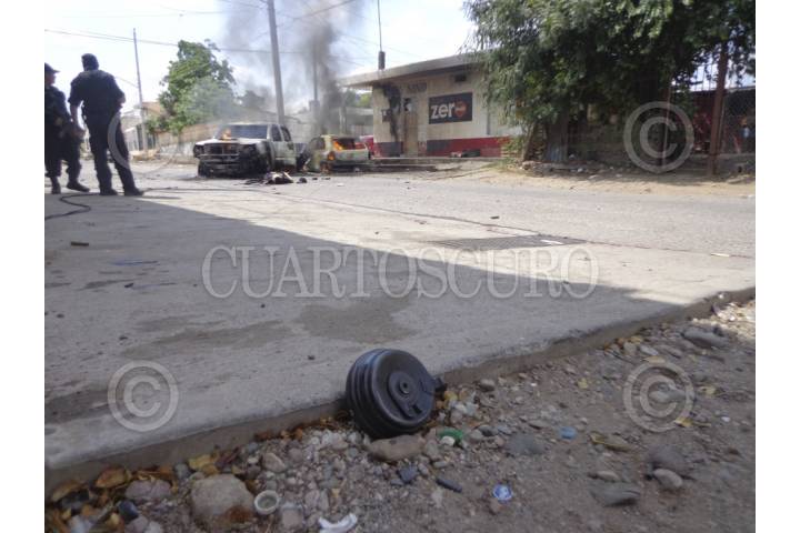 CULIACÁN, SINALOA, 03AGOSTO2013.- Autoridades militares informaron que se suscitó un balacera con gente armada cuando realizaban un patrullaje por la colonia Francisco Villa. Como cifra extraoficial se habla de tres personas muertas en la refriega, durante el combate dos vehículos se incendiaron por que al parecer contaban con artefactos explosivos en su interior. FOTO: CUARTOSCURO.COM