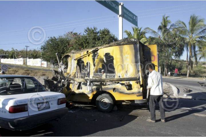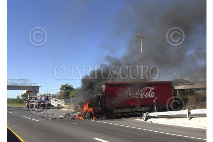 APATZINGÁN, MICHOACÁN, 19MAYO2017.- Sujetos armados realizaron bloqueos carreteros en distintos puntos de Michoacán para incendiar camiones de diferentes empresas comerciales. FOTO: CUARTOSCURO.COM
