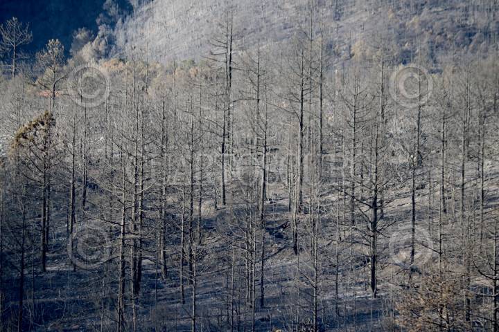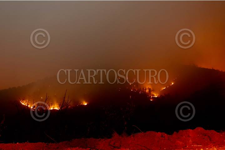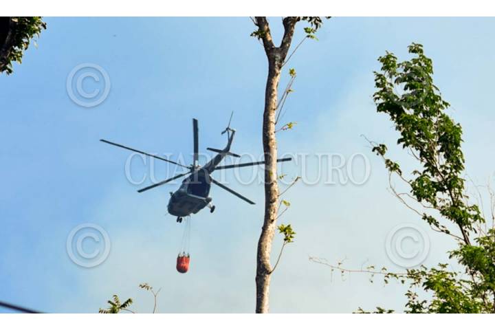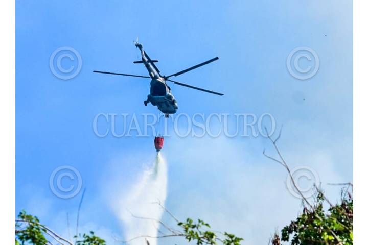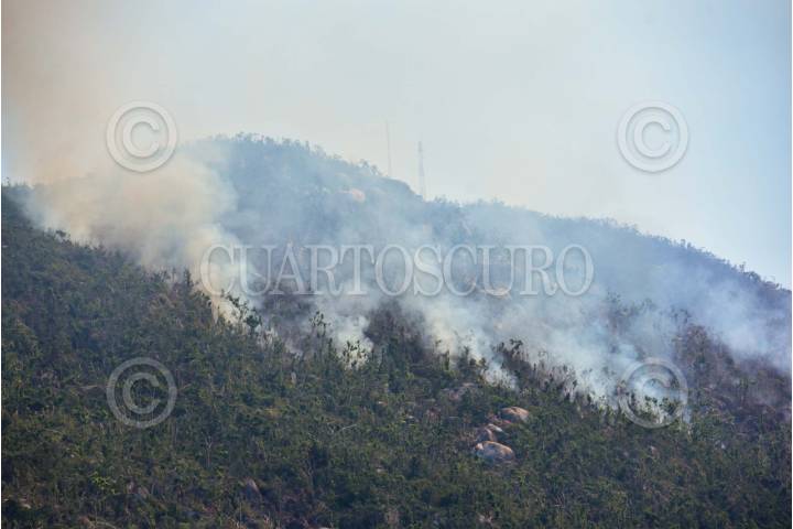 ACAPULCO, GUERRERO. 04MARZO2024.- Dos incendios forestales desde hace 5 días han consumido más de 40 hectáreas del Parque Nacional El Veladero, conformado por los cerros que rodean la bahía de Acapulco, hasta el movimiento 350 trabajadores de diferentes dependencias de gobierno trabajan para sofocar los incendios, además de helicopteros que son utilizados también para arrojar agua y evitar el avance de las llamas. FOTO: CARLOS CARBAJAL/CUARTOSCURO.COM
