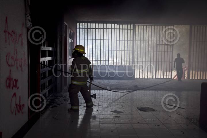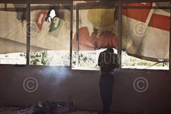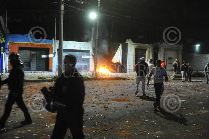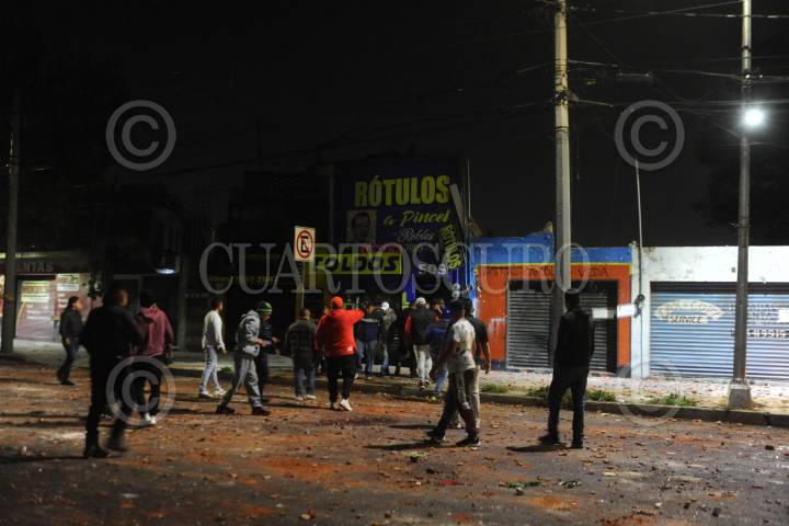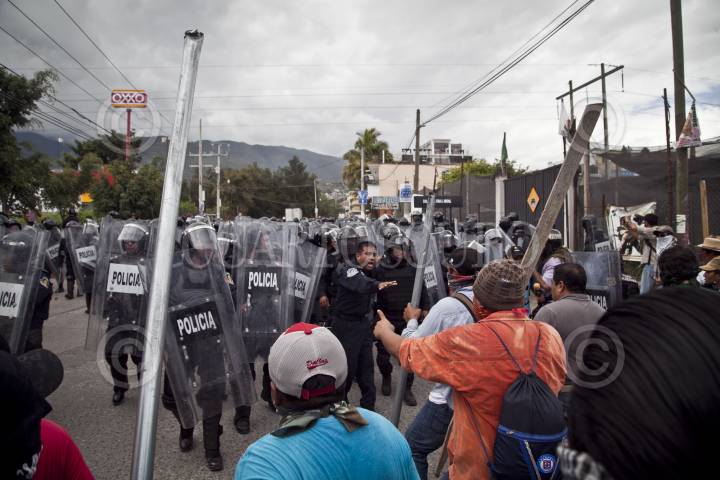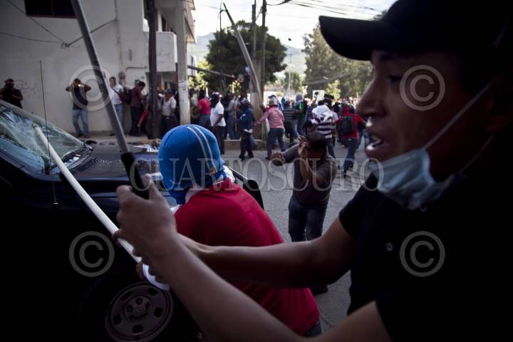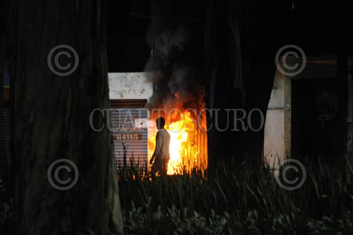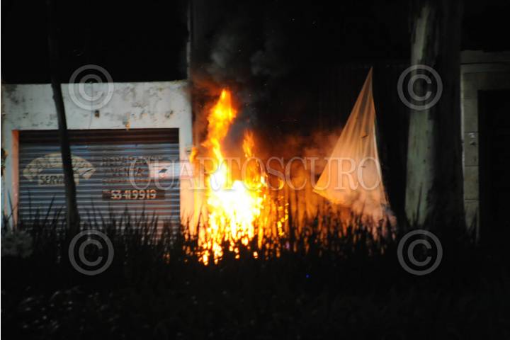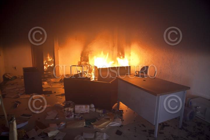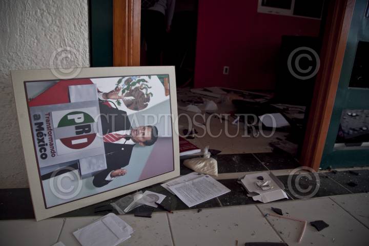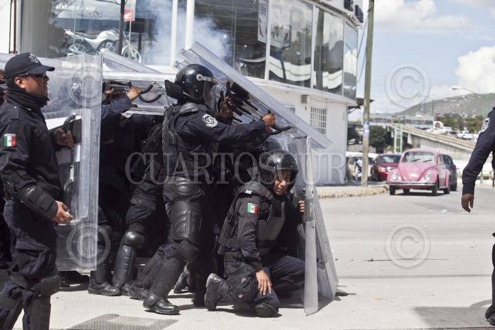 CHILPANCINGO, GUERRERO 11NOVIEMBRE2014.- Integrantes de la CETEG, MPG y normalistas en apoyo a Ayotzinapa, quemaron las instalaciones del PRI en Guerrero y se enfrentaron con elementos de la policía federal, para exigir que se aclaren los hechos con los 43 estudiantes desparecidos en Iguala. FOTO: RASHIDE FRIAS / CUARTOSCURO.COM