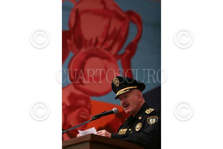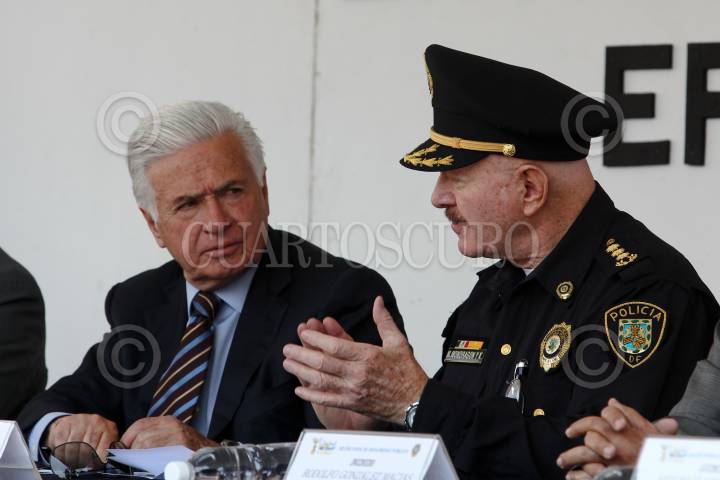 MÉXICO, D.F., 31MARZO2011.- Manuel Mondragón y Kalb, Secretario de Seguridad Pública del Distrito Federal, durante la entrega de incentivos a la eficiencia policial a dos 2849 elementos adscritos a las subsecretarias de operación policial, inteligencia, participación ciudadana y prevención del delito. FOTO: SAÚL LÓPEZ/CUARTOSCURO.COM